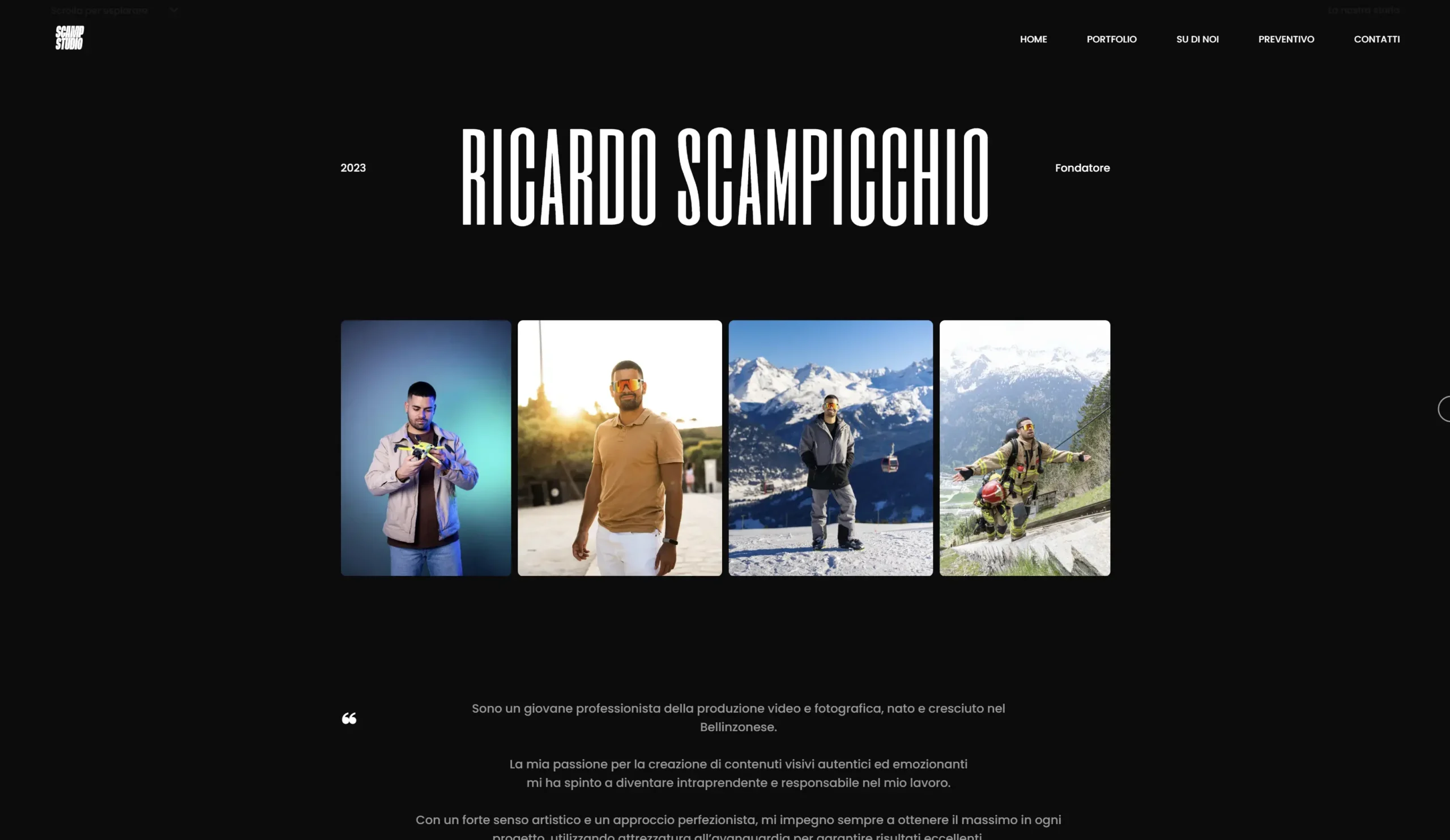 Con un design elegante e contemporaneo, la piattaforma guida l’utente attraverso sezioni dedicate ai progetti grafici, ai videoclip e alle riprese con droni, valorizzando ogni contenuto con un’estetica curata e originale. L’esperienza di navigazione è arricchita da gallerie multimediali e anteprime video, che permettono di entrare nel mondo visivo di Scamp-Studio e di scoprire il loro approccio innovativo al racconto per immagini.