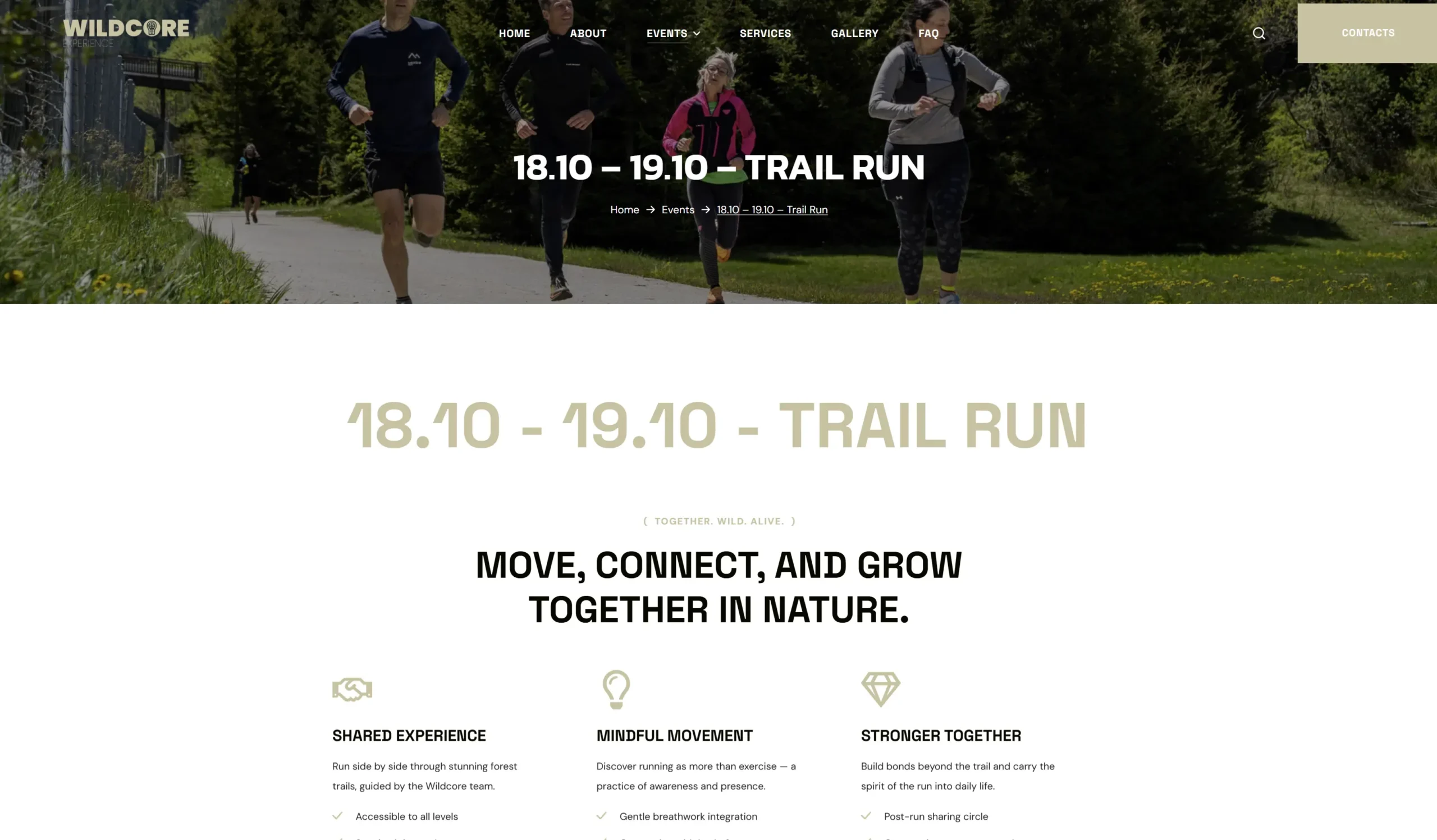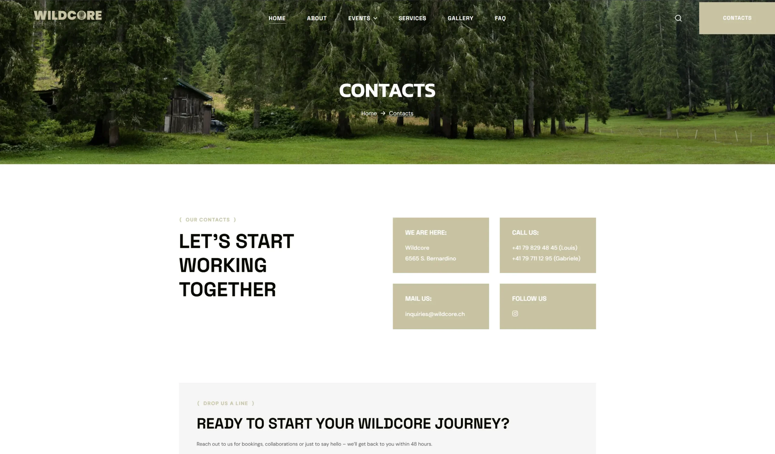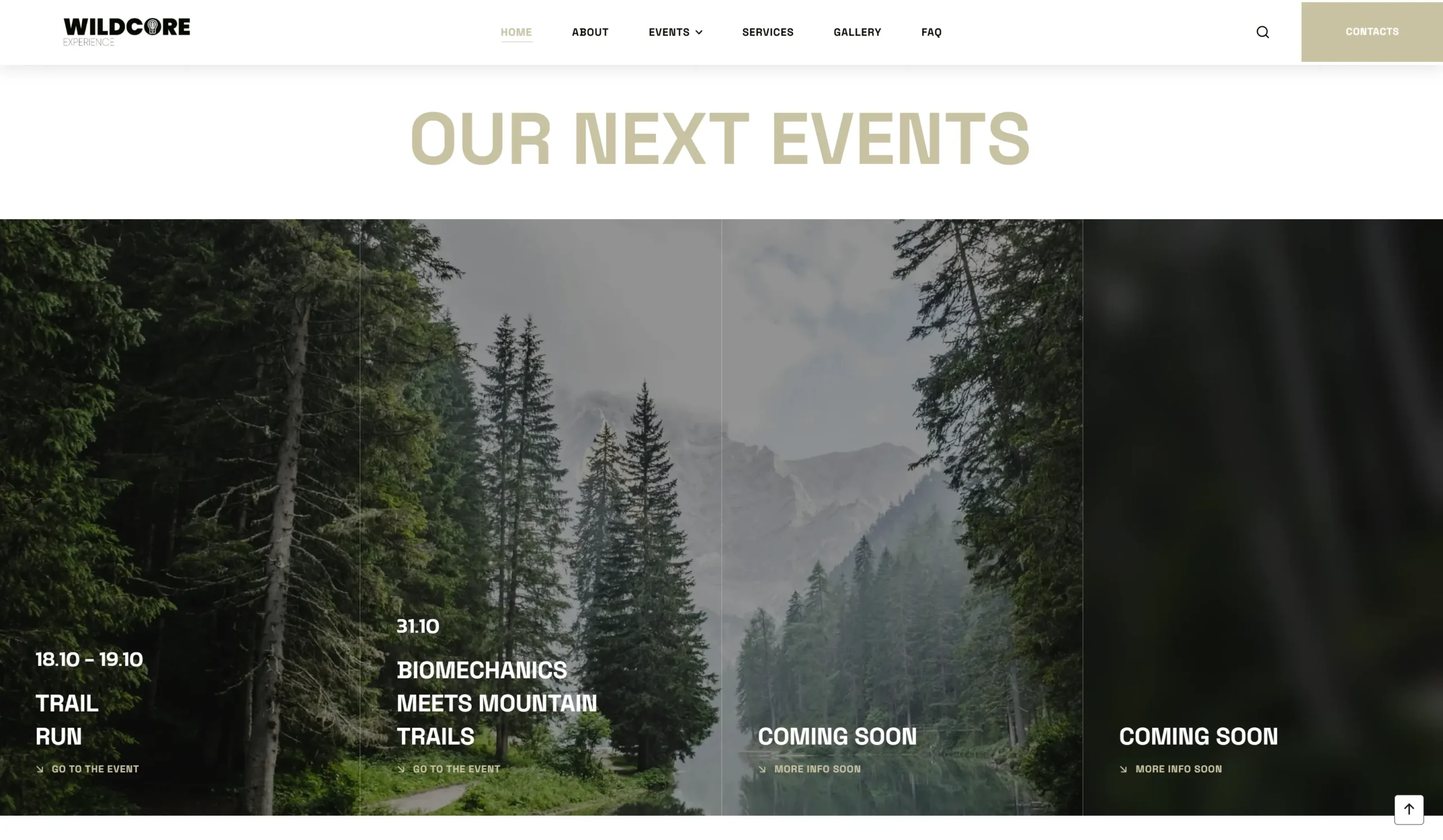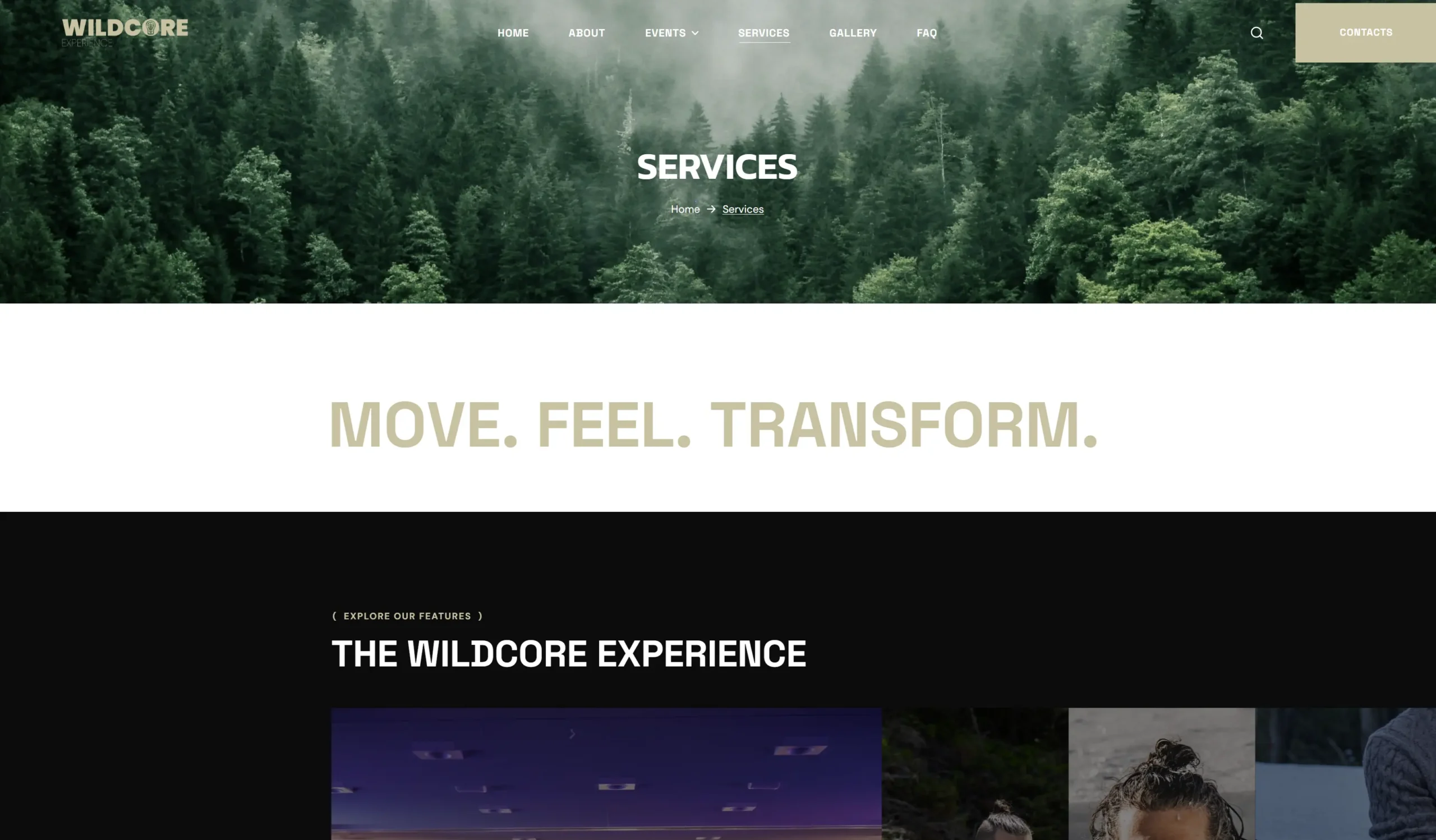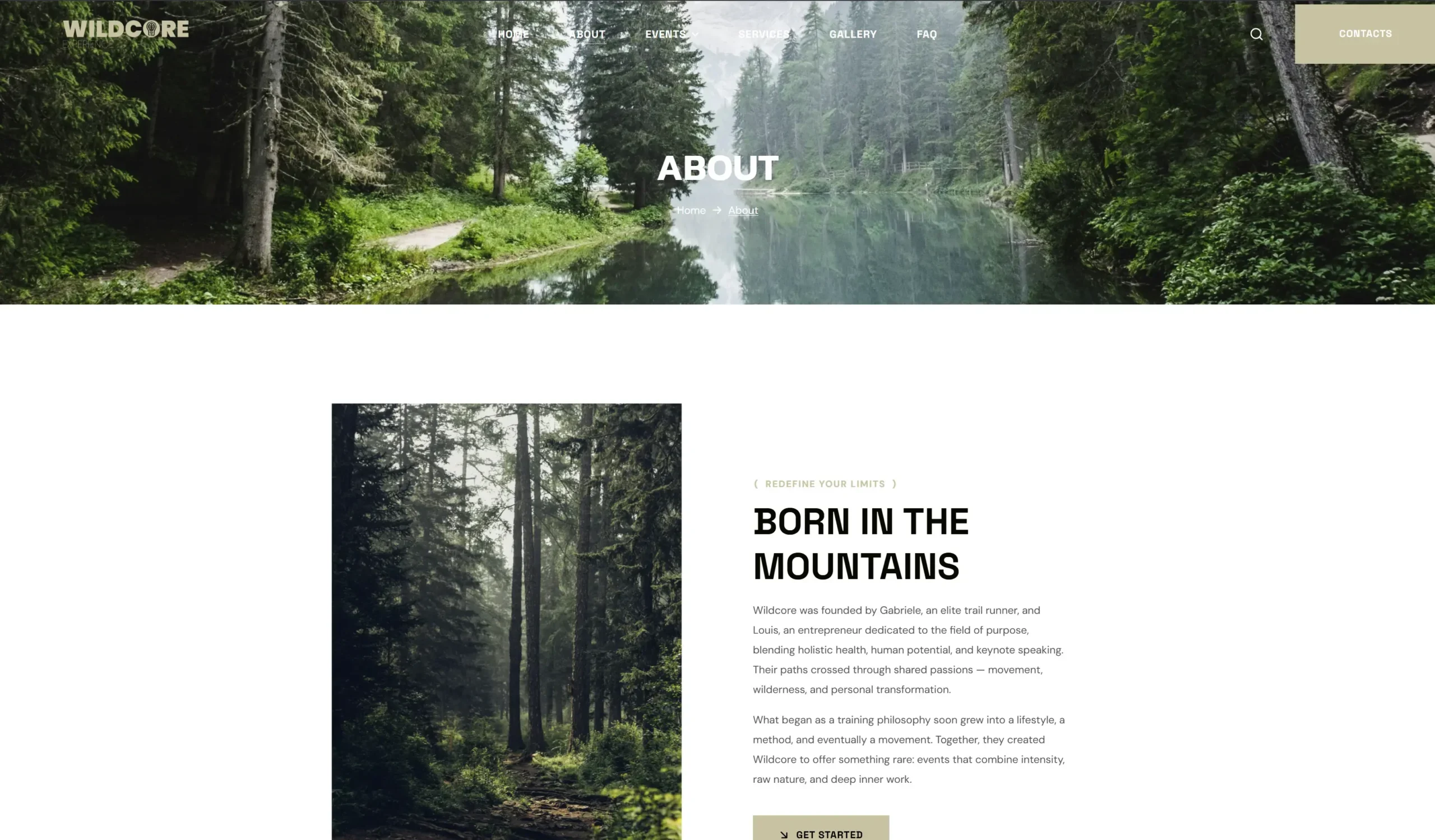 L’estetica del sito riflette il carattere dinamico e autentico di Wildcore, creando un ambiente digitale che rispecchia la potenza e l’energia delle esperienze proposte.
